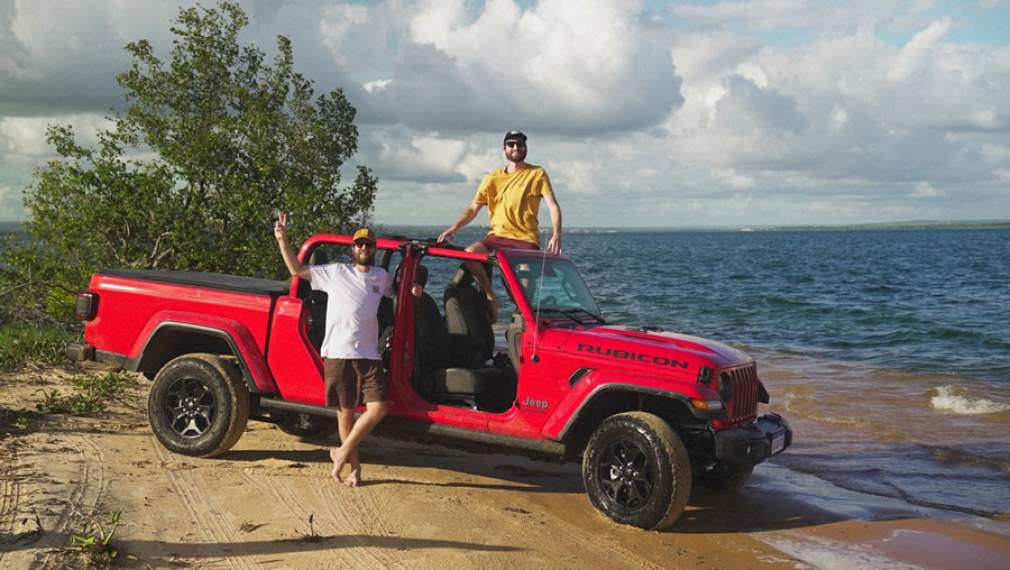 "Go Out Make Some Memories” é o slogan da Bolovo, um verdadeiro convite para escrever novas histórias, assim não teria escolha melhor para apresentar a picape da Jeep do que a dupla de aventureiros. Passando por lugares incríveis, como a ilha de Rarrá, na Bahia, e até pela Roliúde Nordestina, em Cabaceiras, na Paraíba, eles viveram um verdadeiro roteiro de filme de ação, com direito a prática de J Sports, como mountain bike, paraquedas e até colocaram o Gladiator à prova em uma sessão de wakeskate. E claro, a picape deu conta do recado.