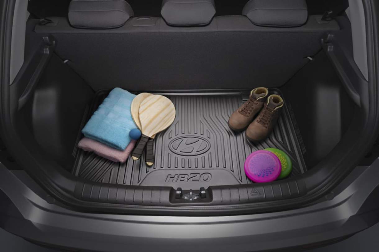 - Tapete abandejado é impermeável e ideal para o uso no dia a dia nas versões hatch e sedan do HB20.