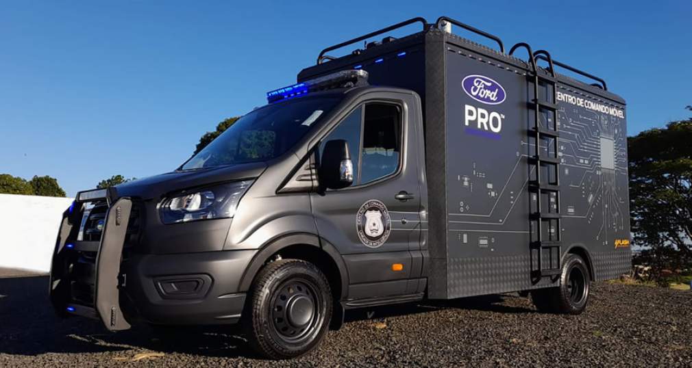 A nova Transit Chassi, que chega ao mercado no segundo semestre de 2023, é apresentada numa versão equipada como centro de comando móvel, com toda a estrutura de uma unidade de inteligência para suporte da polícia. Ela tem um mastro telescópico com faróis de LED e câmera móvel com visão de 360 graus, zoom de 42x, visão noturna e estabilização de imagem. Há também três câmeras nas laterais e na frente do veículo, todas com sistema de reconhecimento facial e de placas.