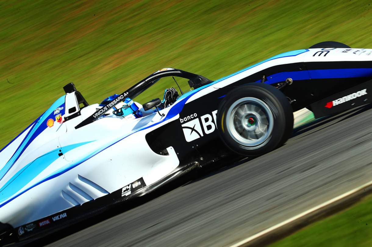 Um fim de semana quase perfeito para Vinícius Tessaro em Interlagos, em São Paulo (SP). No último sábado (22) e domingo (23) o piloto de 17 anos começou a disputa da temporada 2023 da Fórmula 4 Brasil e foi ao topo do pódio duas vezes em três corridas disputadas. Com os resultados, Tessaro, que integra a equipe Cavaleiro Sports, somou 52 pontos e lidera o campeonato com 5 tentos de vantagem sobre o segundo colocado Álvaro Cho. Essas foram as duas primeiras vitórias do piloto que faz sua segunda temporada na categoria.