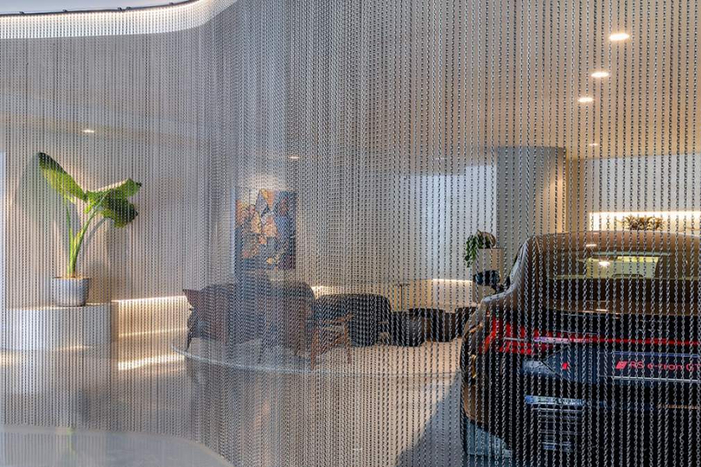 O espaço da marca “Autoplatz” tem assinatura dos renomados arquitetos Bruno & Indianara Barbieri, que criaram um ambiente amplo e convidativo, com texturas suaves, teto sem cantos vivos e iluminação intimista, destacando as linhas esculturais do carro da fabricante.