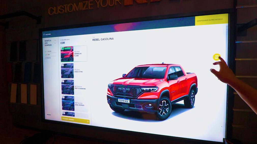 O projeto conta com dois painéis de LED de última geração, dois monitores, sendo que um deles touch screen, com conteúdo interativo “monte seu RAM” que possibilita ao cliente personalizar o carro mediante suas preferências, tablets do “vendedor silencioso” e sistema de som integrado. Todo o conteúdo informativo veiculado também está sob a gestão da The LED, fato que possibilita a troca ou alternação de mensagens em tempo real.