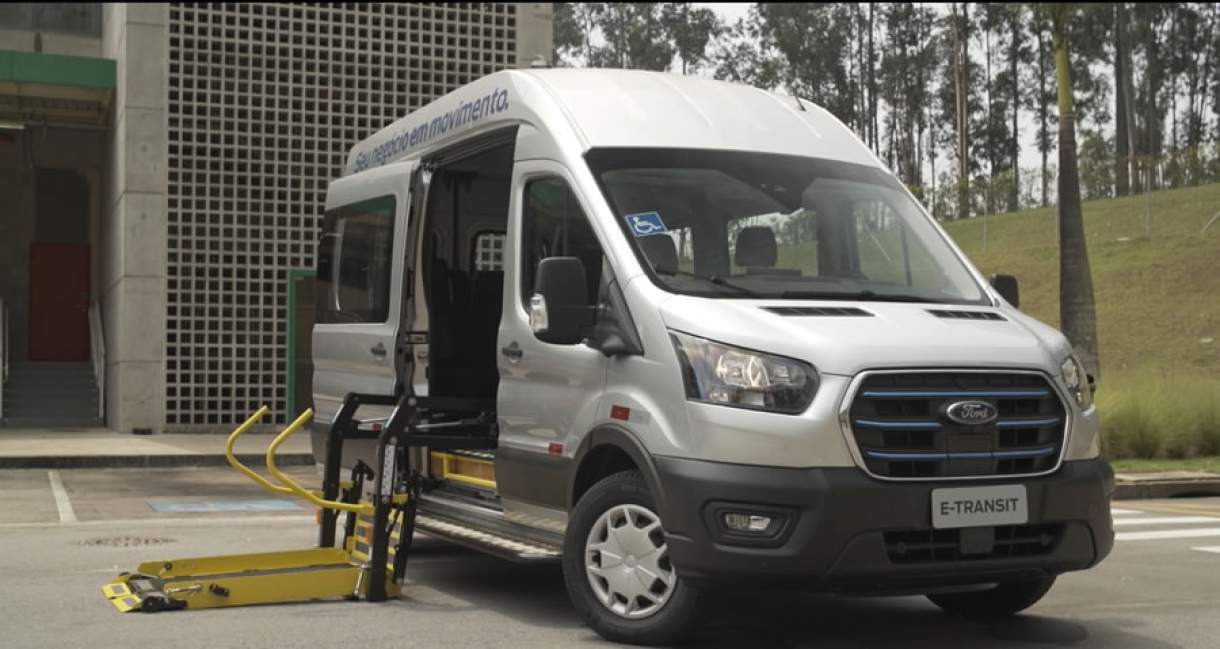 Ford E-Transit 100% elétrica com acesso para dois cadeirantes é exibida na Reatech Brasil 2023