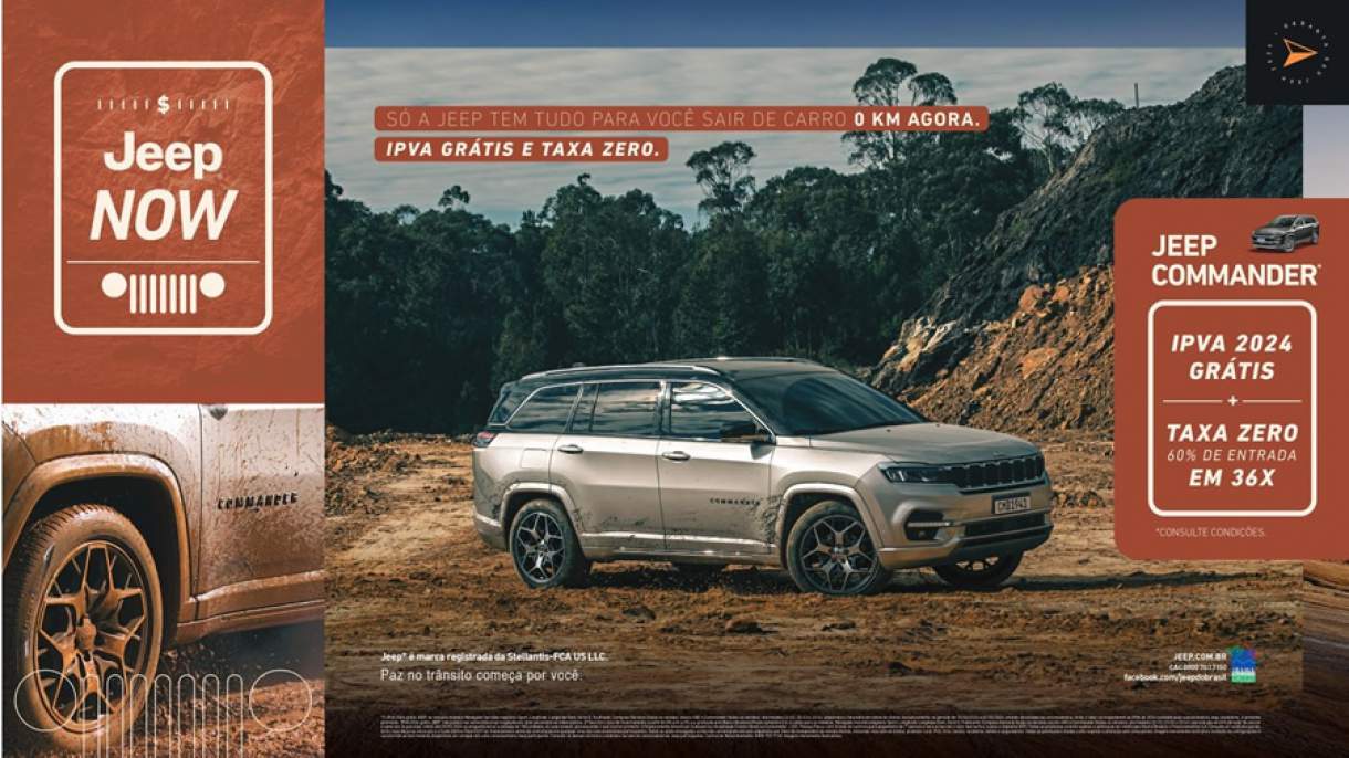 Jeep® NOW: campanha comercial com taxa zero em 36x, IPVA grátis e supervalorização do usado