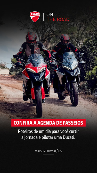 Para alugar a sua Ducati ou inscrever-se para participar do passeio com a sua Ducati acesse o site oficial da Ducati (https://www.ducati.com/br/pt/eventosducati)