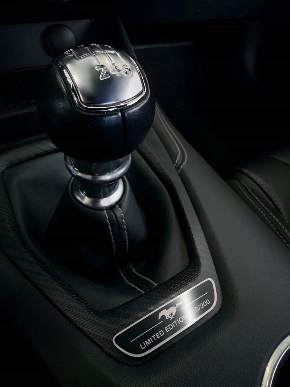 A Ford divulgou hoje um teaser do novo Mustang GT Performance com transmissão manual, que será lançado em breve no Brasil. A foto destaca a placa numerada aplicada junto ao câmbio, revelando que ele será oferecido em edição limitada de apenas 200 unidades. Essa característica reforça a exclusividade do modelo, que promete ser disputado por colecionadores e fãs da direção esportiva.