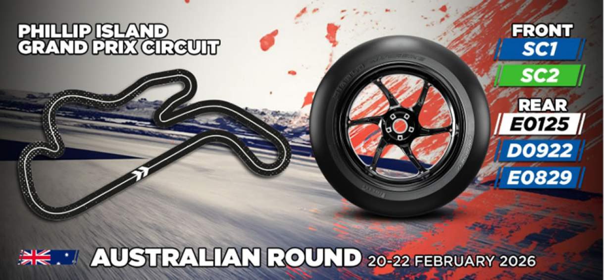 · Novidades na alocação de pneus. Para o fim de semana de corrida em Phillip Island Grand Prix Circuit, os pilotos do WorldSBK terão duas soluções de slick dianteiro e três traseiras à disposição: SC1 macio e SC2 médio na dianteira. Já na traseira, além da solução de desenvolvimento em composto médio D0922, já utilizada nos testes, serão adicionadas duas novas opções: o médio E0829 e o macio na especificação E0125. O D0922 também estará disponível, como única solução traseira, para a categoria WorldSSP, que pela primeira vez utilizará as mesmas medidas de pneus adotadas pelos colegas do WorldSBK.